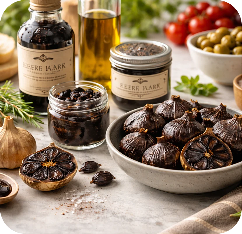 We specialize in slow-aged Indian Black Garlic designed for premium food, nutraceutical, and gourmet brands worldwide.